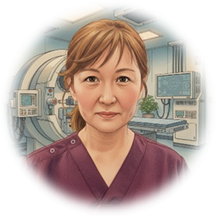放射線看護専門看護師として、がんをはじめさまざまな疾患で放射線治療を受ける患者さんの安全と安心を支える看護を実践しています。放射線による影響を専門的に評価し、副作用の予防や症状緩和、生活の質(QOL)を守るための支援、多職種との連携による包括的なケアを行っています。患者さん一人ひとりに寄り添い、放射線に対する不安や恐怖心を和らげながら、安心して治療を続けられるよう支援することが私の役割です。専門的な知識と技術を活かしつつ、やさしくあたたかいケアを通して、患者さんとご家族に寄り添うスペシャリストでありたいと考えています。