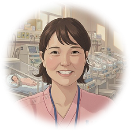 新生児集中ケア認定看護師の役割としては、急性期にあるハイリスク新生児の急激な変化を予測し、予防的観点から働きかけ、個別的なケアを行います。また、救命だけではなく、NICUにおいて発達の促進や家族間の調整などにも介入を行います。そのほか、病棟内だけではなく、産科病棟での妊娠中の母親との関わり、退院した子どもたちとの小児科病棟での関わりなど、NICU内だけではなく、生まれる前~退院後・在宅における期間まで、幅広く関わっており、自分自身の役割を「橋渡し役」だと思っています。1人1人の子どもたちがその子どもたちらしく、命を輝かせてほしいと思い、日々活動しております。今後も、病棟スタッフがOneチームとなり、「障害なき生存」を目標に、赤ちゃんやそのご家族にぬくもりのあり看護が提供できるように日々、頑張ります!!